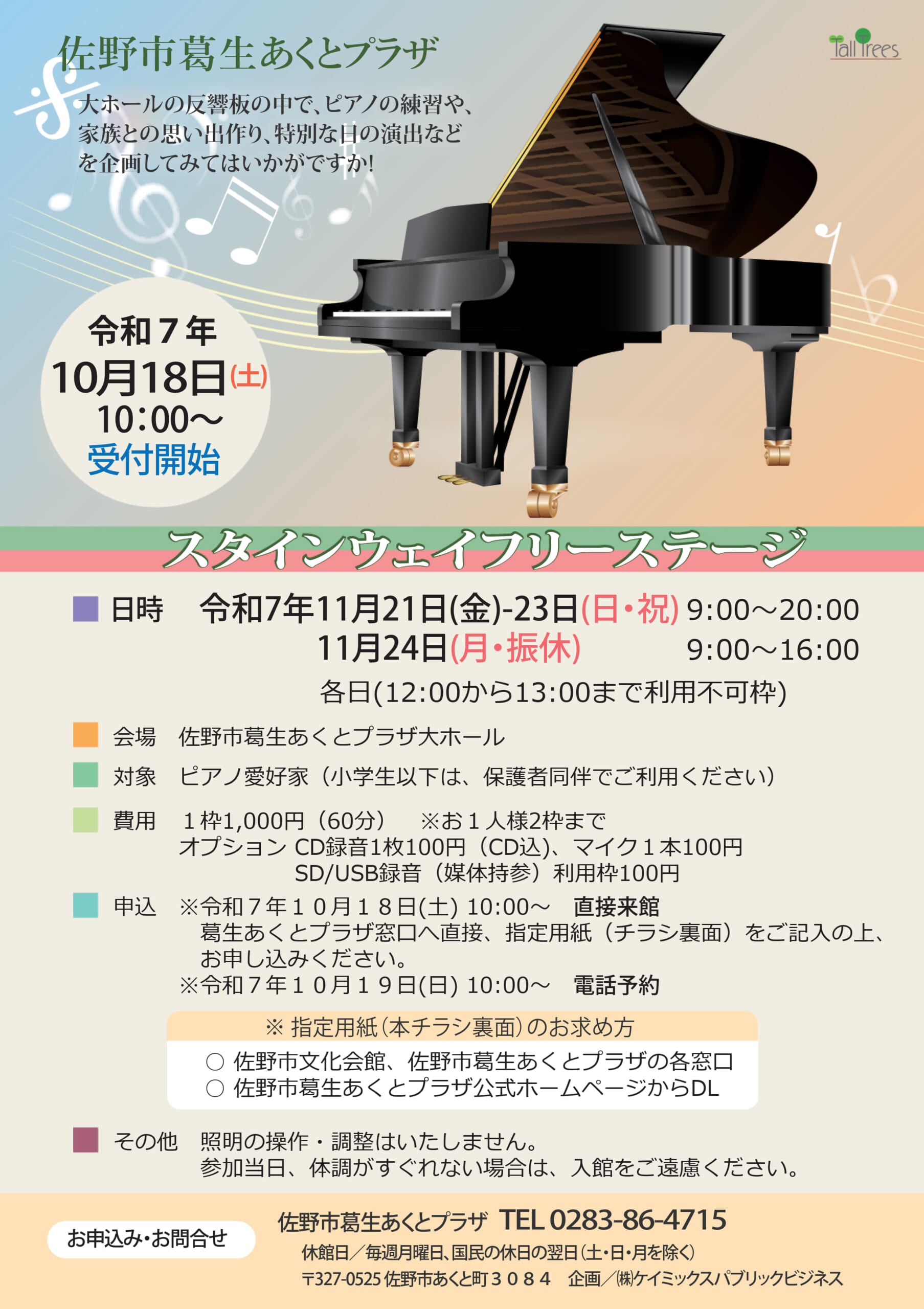 ※佐野市文化施設条例施行規則第2条により佐野市の主催、又は共催事業についてはこの制限はありません。